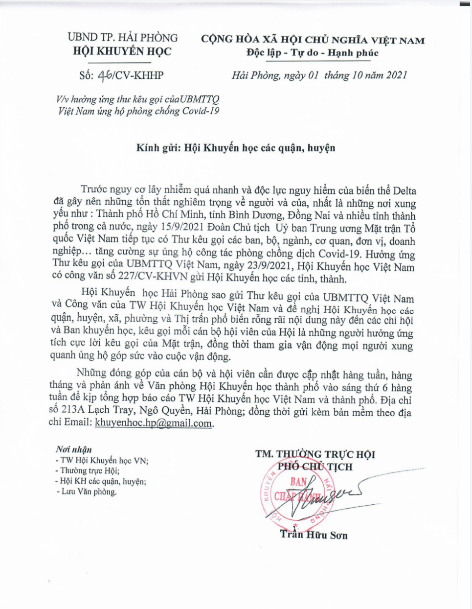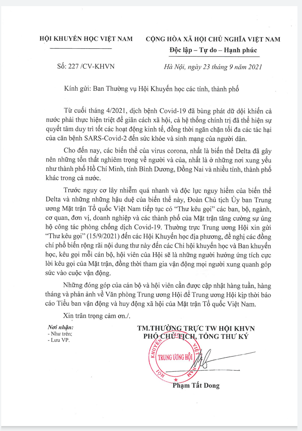 Kính gửi: Các ban, bộ, ngành, cơ quan, tổ chức, đơn vị, doanh nhân, doanh nghiệp; các tỉnh, thành phố; các tổ chức thành viên của Mặt trận Tổ quốc Việt Nam