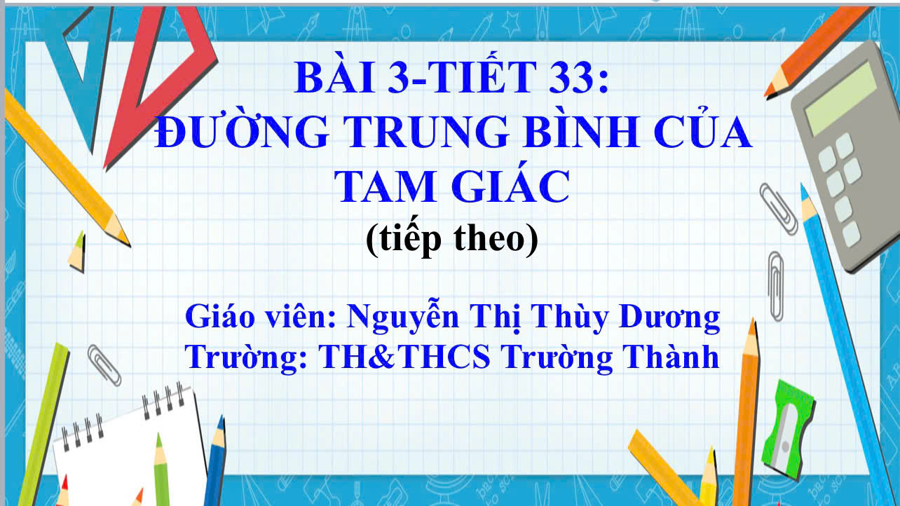 Chiều ngày 18/2/2025, tổ KHTN đã tổ chức lên lớp dạy chuyên đề với bộ môn Toán 8. Tiết dạy do cô giáo Nguyễn Thị Thùy Dương cùng tập thể học sinh lớp 8A thực hiện với bài học “ Tiết 33: Đường trung bình của tam giác”. Về dự tiết chuyên đề có đồng chí Trịnh Văn Dương – HT nhà trường, đồng chí Lê Văn Tiến – Phó hiệu trưởng nhà trường cùng tất cả các thầy, cô giáo trong tổ KHTN của trường TH&THCS Trường Thành.