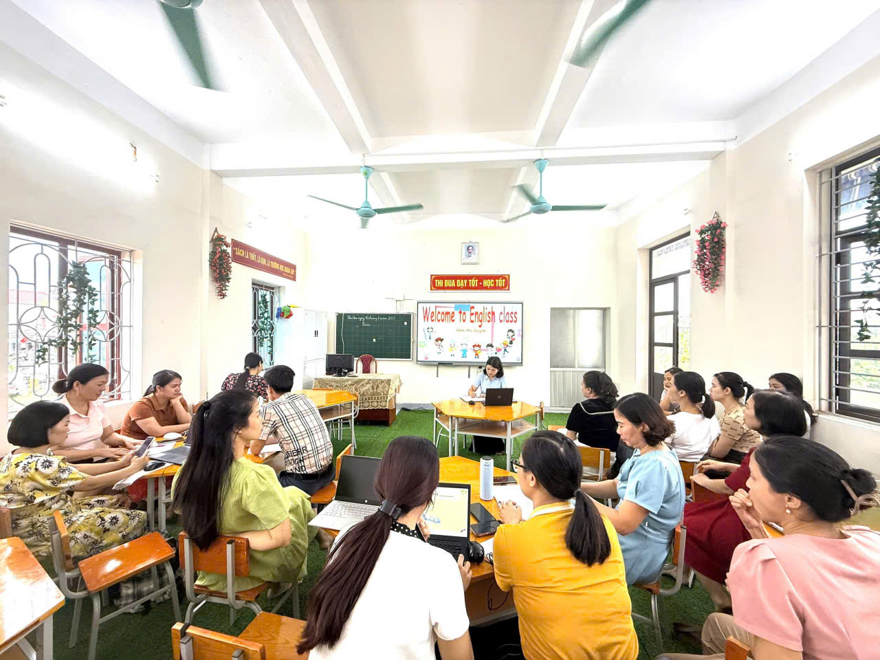 Buổi chuyên đề cũng là dịp để các giáo viên trong khối trao đổi, chia sẻ kinh nghiệm ứng dụng AI vào thực tế giảng dạy, từ đó nâng cao chất lượng môn Tiếng Việt ở khối 1, môn Toán ở khối 2, môn Tiếng Anh ở khối 3 nói riêng và toàn trường nói chung.