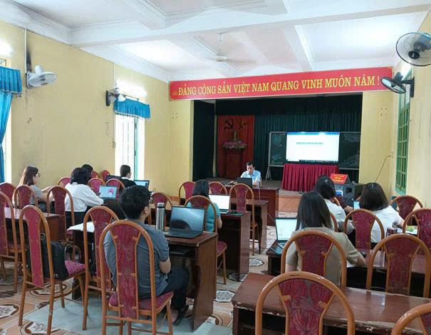 Một số hình ảnh cán bộ, giáo viên nhà trường tham gia buổi tập huấn và tạo ra sản phẩm dạy học từ AI.