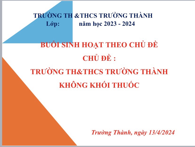 Thực hiện kế hoạch của Liên đội trường TH&THCS Trường Thành về việc tuyên truyền cho HS về tác hại của thuốc lá và thuốc lá điện tử.