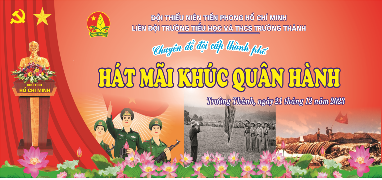 Thực hiện sự chỉ đạo của Hội đồng Đội huyện An Lão, Phòng Giáo dục và đào tạo huyện An Lão, được sự nhất trí của cấp ủy chi bộ Đảng, Ban giám hiệu nhà trường và sự quan tâm ủng hộ của các ban ngành đoàn thể, các bậc phụ huynh, hôm nay ngày 21 tháng 12 năm 2023, Liên Đội trường TH&THCS Trường Thành long trọng tổ chức chuyên đề cấp Thành phố “Hát mãi khúc quân hành” năm học 2023-2024.