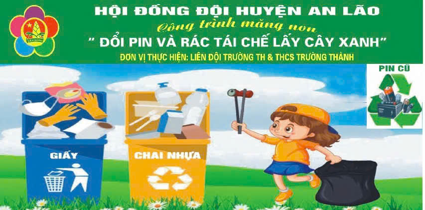 Liên đội TH&THCS Trường Thành đã được triển khai , công trình măng non "Đổi pin và rác tái chế lấy cây xanh"từ ngày 21/04/2025 với mục tiêu nâng cao ý thức bảo vệ môi trường cho các em học sinh, đồng thời lan tỏa thông điệp sống