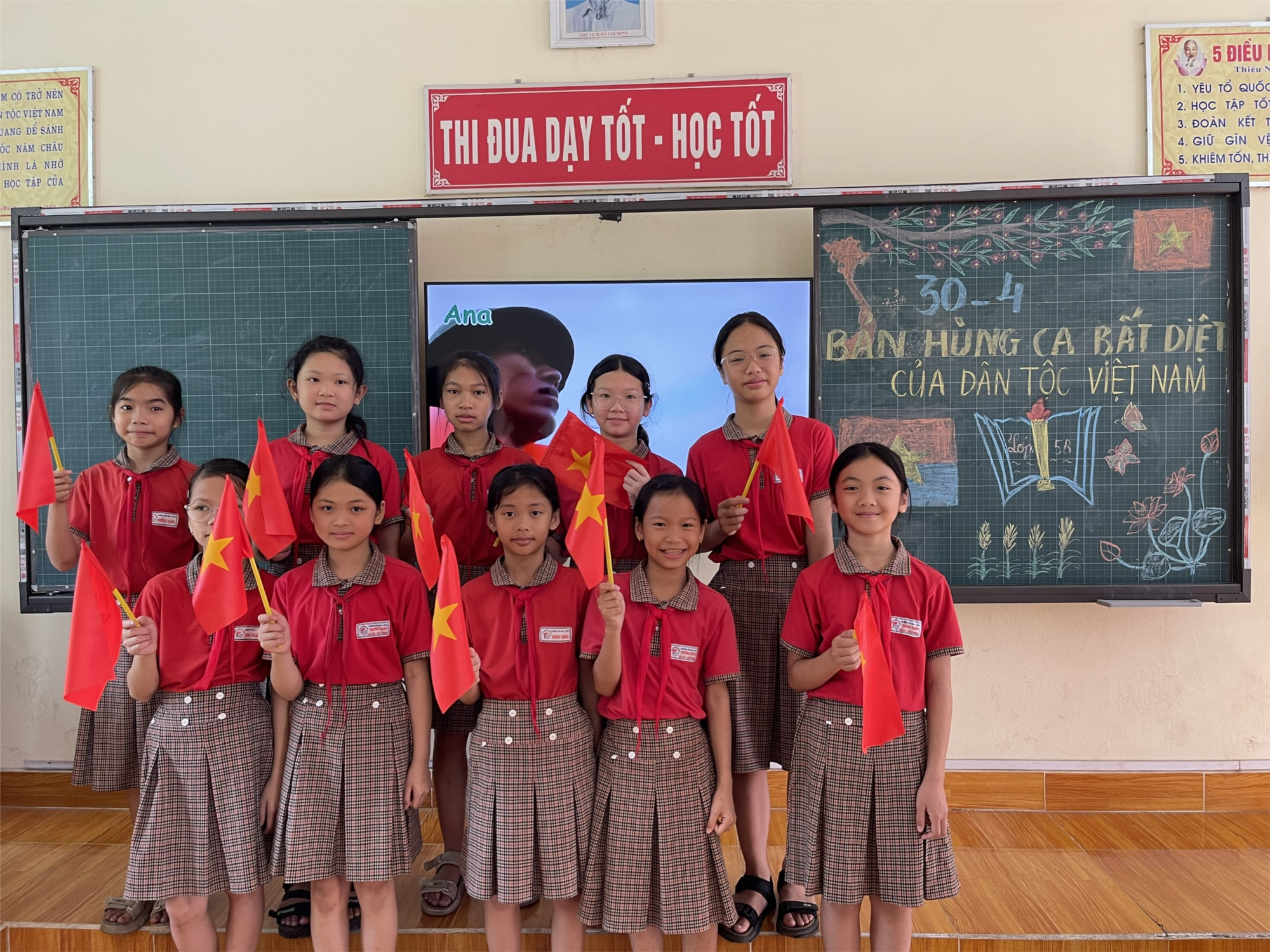 Hướng tới kỉ niệm 50 năm ngày Giải phóng miền Nam thống nhất đất nước (30/41975 - 30/4/2025), học sinh khối 3 Trường Tiểu học & Trung học cơ sở Trường Thành đã cùng nhau chụp ảnh lưu niệm và tham gia các hoạt động ý nghĩa. Mỗi ánh mắt đều hồn nhiên, mỗi nụ cười trong sáng đều thể hiện niềm tự hào và lòng biết ơn đối với lịch sử hào hùng của dân tộc. Việc làm này không chỉ tạo không khí vui tươi, hào hứng mà còn góp phần bồi đắp lòng yêu nước, niềm tự hào dân tộc cho các em học sinh