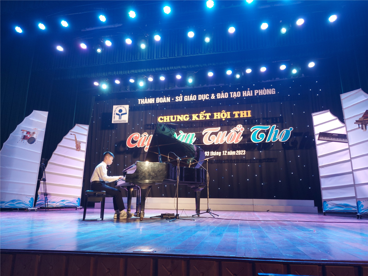 Ngày 3/12/2023 vừa qua, Sở GD&ĐT kết hợp Thành đoàn tổ chức chung kết hội thi" Cây đàn tuổi thơ " cấp thành phố tại cung văn hoá Thiếu nhi Thành phố. Vượt qua hơn 700 thí sinh tham gia vòng loại, em Nguyễn Vũ Trường Giang học sinh lớp 8B và em Vũ Thị Mai Anh lớp 3A đã tiến tới vòng chung kết của hội thi. Kết thúc hội thi, em Nguyễn Vũ Trường Giang đã xuất sắc giành giải Ba, em Vũ Thị Mai Anh giành giải Khuyến khích. Có được kết quả đáng phấn khởi đó là sự nỗ lực rèn luyện của các em và sự hỗ trợ tận tình của cô giáo phụ trách môn Âm nhạc nhà trường. Với kết quả này, hi vọng trong hội thi " Cây đàn tuổi thơ" năm học tới các em sẽ nỗ lực rèn luyện để tham gia giành kết quả cao hơn nữa.