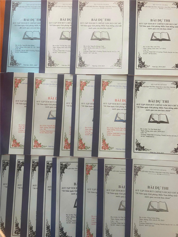 Hưởng ứng cuộc thi "Sưu tập và tìm hiểu tem bưu chính năm 2025" do ngành Bưu chính phát động, học sinh trường TH&THCS Trường Thành đã tích cực tham gia với chủ đề đặc biệt: "50 năm Giải phóng miền Nam, thống nhất đất nước qua tem bưu chính".