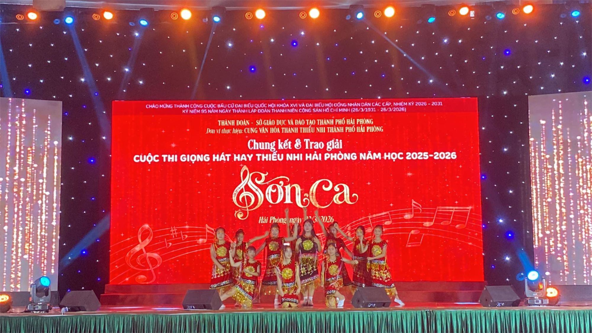 Vừa qua, tại cuộc thi Giọng hát hay Sơn ca cấp Thành phố năm học 2025-2026, hai em đã mang đến những màn trình diễn vô cùng ấn tượng, tự tin tỏa sáng trên sân khấu lớn: Em Vũ Thị Mai Anh: Xuất sắc vượt qua 552 thí sinh của vòng Sơ khảo và đạt Giải Ba trong vòng Chung kết cuộc thi diễn ra ngày 22/03/2026 với bài hát "Mái trường Tây Nguyên". Giọng hát truyền cảm và phong thái tự tin của Mai Anh đã chinh phục hoàn toàn Ban giám khảo. Em Nguyễn Hải Phong: Đã hoàn thành xuất sắc phần dự thi của mình tại vòng sơ khảo cấp Thành phố với ca khúc "Viết tiếp câu chuyện Hòa Bình". Hải Phong đã thể hiện niềm tự hào và tình yêu quê hương đất nước qua từng lời ca.