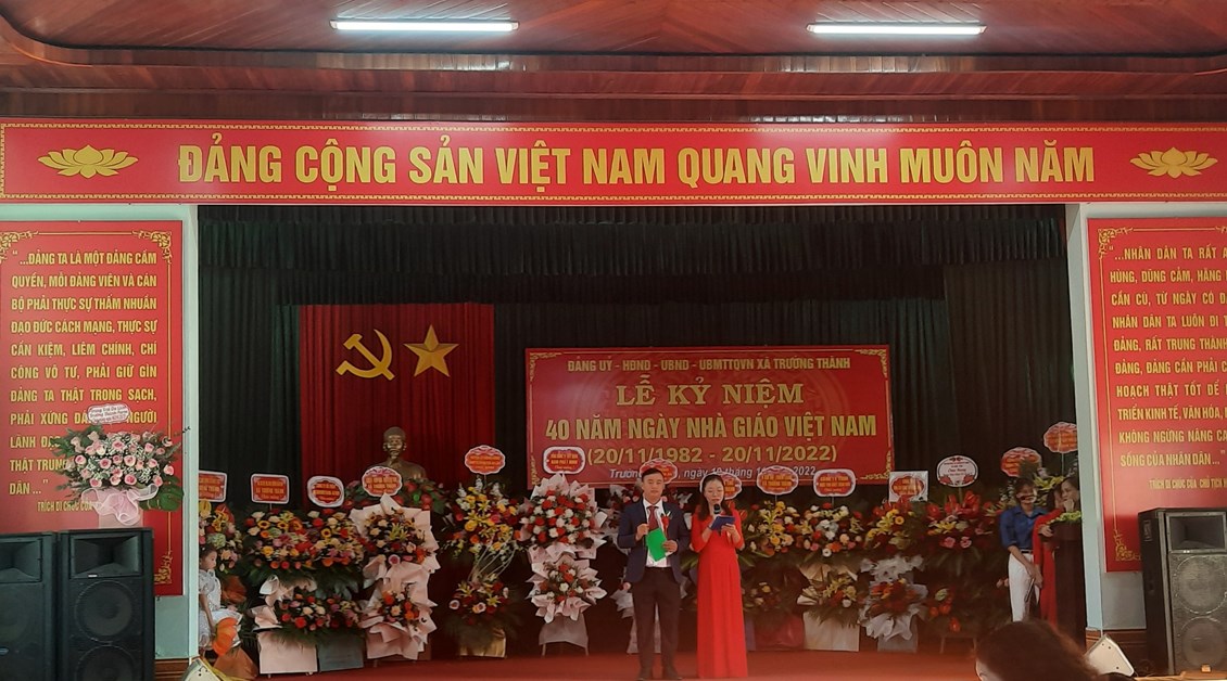 Hoà chung trong không khí vui mừng chào đón ngày nhà giáo Việt Nam 20-11; sáng ngày 19 tháng 11 Đảng ủy - HĐND - UBND - UB MTTQ Việt Nam xã Trường Thành long trọng tổ chức Lễ kỷ niệm 40 năm ngày Nhà giáo Việt Nam (20-11/1982- 20/11/2022).