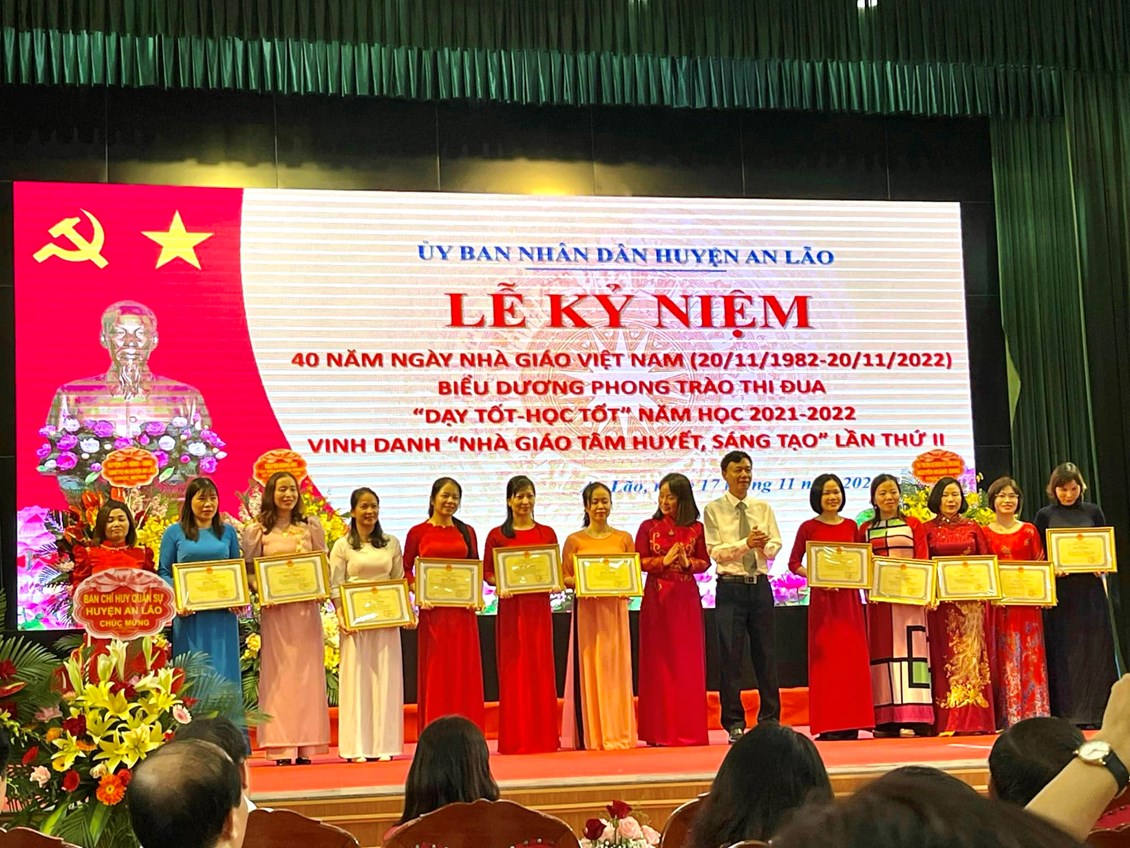 Nhân dịp này, nhiều tập thể, cá nhân Ngành Giáo dục và Đào tạo huyện An Lão được nhận Bằng khen, Cờ thi đua, Giấy khen của Chính Phủ, của Bộ Giáo dục và Đào tạo, UBND thành phố và huyện An Lão.